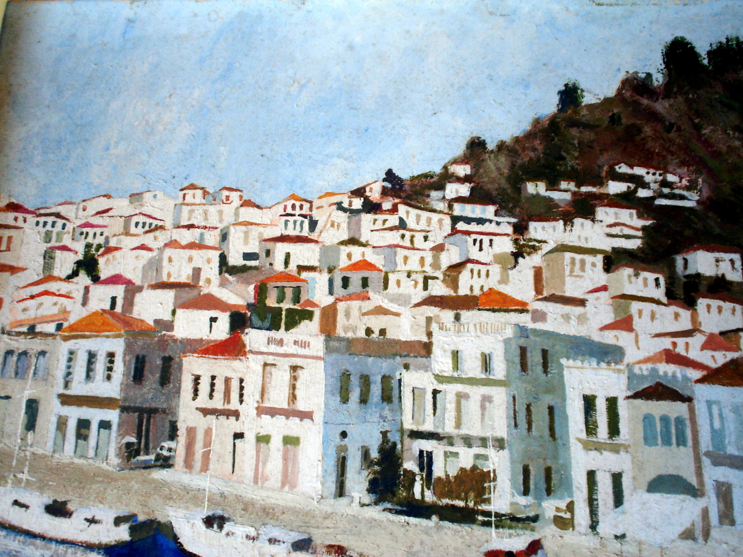 Spanish Village measures 55 x 49cm, in a white painted wooden frame.